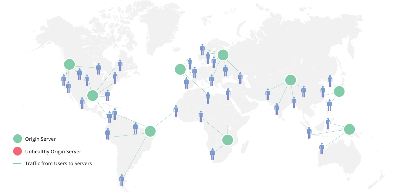Cloudflare's Load Balancing automatically reduces latency by directing visitors to infrastructure closest to them: send European customers to the London datacenter, Australian customers to the Sydney datacenter, and anywhere in-between. Load Balancing builds on top of Cloudflare’s Anycast network, allowing for quick delivery of static assets through Cloudflare's CDN, and reducing latency for dynamic requests by keeping visitors close to your infrastructure.