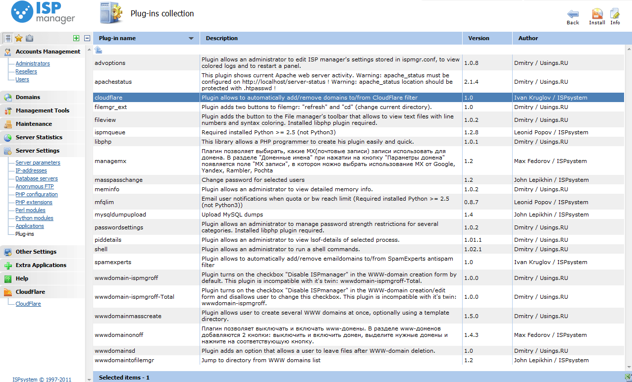 Installation InstructionsEnter the ISPmanager control panel - go to the Server Settings module - the Plug-Ins section. Then, click the Install icon in the upper corner of the toolbar.